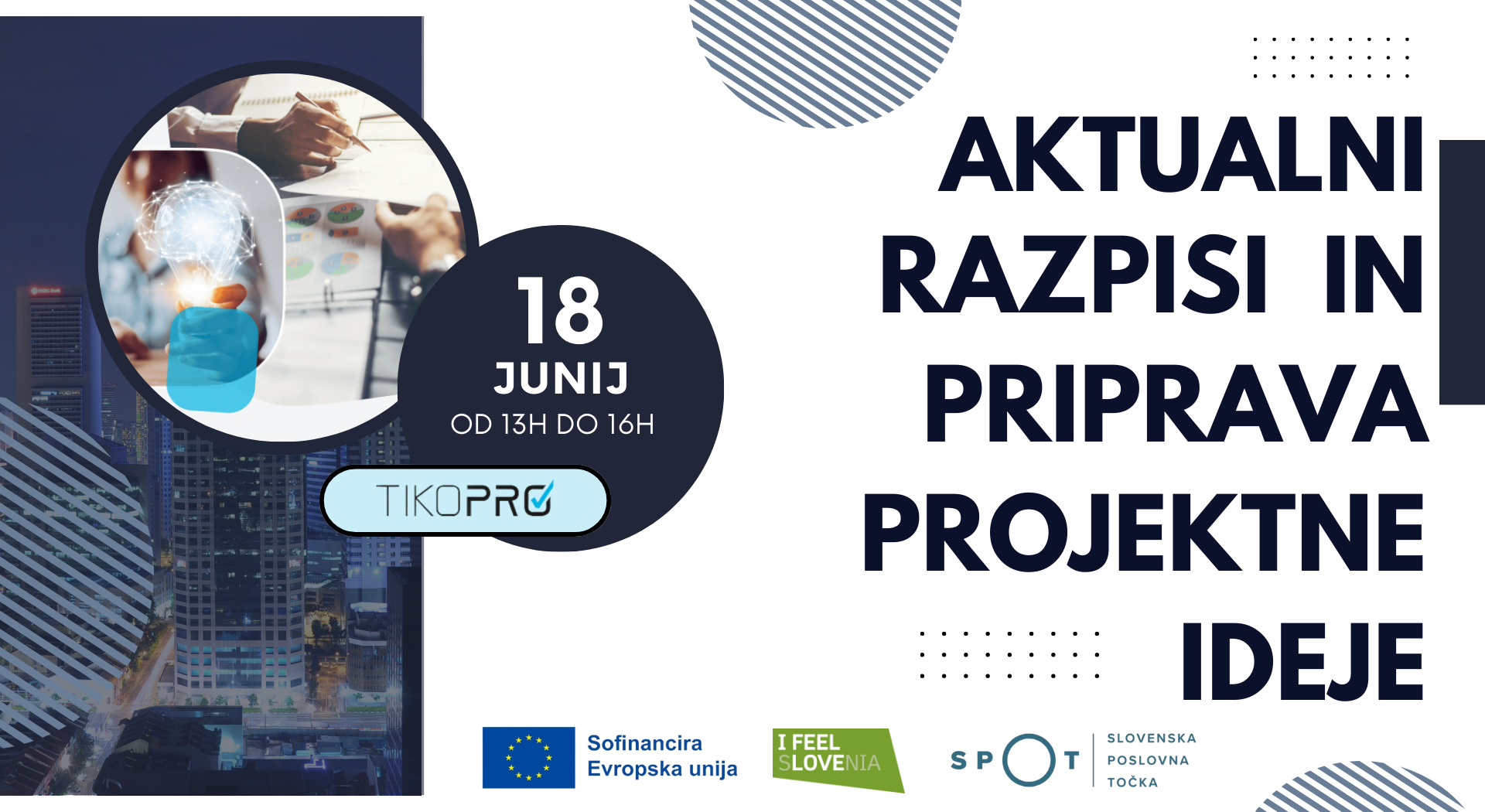 Brezplačna delavnica: Aktualni razpisi in priprava projektne ideje Vabimo vas na dogodek, ki bo potekal v torek, 18. junija 2024, ob 13. uri v prostorih Saša inkubatorja. Datum objave: 11. 06. 2024 V sodelovanju s SAŠA inkubatorjem za vas pripravljamo zanimivo delavnico na temo aktualnih slovenskih razpisov ter pripravo projektov za investicije in razvojno-raziskovalne razpise. Dogodek je odlična priložnost za vse, ki želite pridobiti podrobne informacije o aktualnih in napovedanih slovenskih razpisih ter se naučiti, kako uspešno pripraviti dokumentacijo za investicijske in raziskovalno-razvojne projekte. PROGRAM Ključne teme, ki jih bo pokrivala delavnica: Pregled aktualnih in napovedanih slovenskih razpisov. Priprava investicijskega projekta in dokumentacije. Raziskave in razvoj. Priprava na RR razpis. Q&A. 1:1 svetovanje. Anja Bačko, Matej Tisaj, vodja prodaje SI vodja projektov EU Na delavnici se nam lahko pridružite tudi preko spleta.* Povezava bo prijavljenim poslana na dan dogodka. *Individualno svetovanje 1:1 bo omogočeno samo udeležencem v živo. Dogodek je za udeležence brezplačen, prijava pa je obvezna s klikom na povezavo: PRIJAVA NA DOGODEK KDAJ: 18.6.2024 od 13h do 16h KJE : Saša inkubator, Šaleška cesta 2a, Velenje Trebate li našu pomoć prilikom pridobivanja sredstava? Pošaljite nam upit i porazgovarati ćemo o mogućnostima suradnje. Kontaktirajte nas